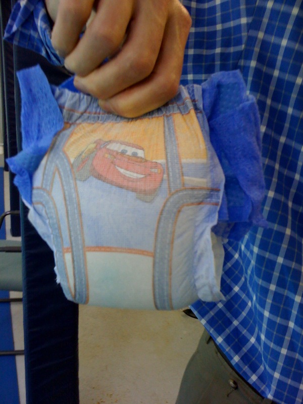 Along with the arrival of our new son came the arrival of both sets of grandparents. They came not only to welcome John Xavier into the world, but to help us care for Carlitos Eli while we adjust to ‘Life with a Newborn.’ One of these helpful tasks was to take Carlitos to his swim lessons this morning. As they were leaving, the main piece of information we repeated to them was that the swim diaper was the one with Diego on it. Yes, this is going where you probably think it is going…